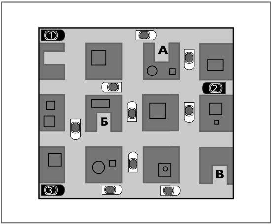 Три тонированных лимузина, направляющиеся на важную встречу мафиозных кланов, въезжают в центральный деловой район, где для них есть три подходящих гаража: А, Б и В. Три набора указаний, данных ниже, приведут каждый из трех лимузинов в один из гаражей, но какой из них попадет в какой гараж?