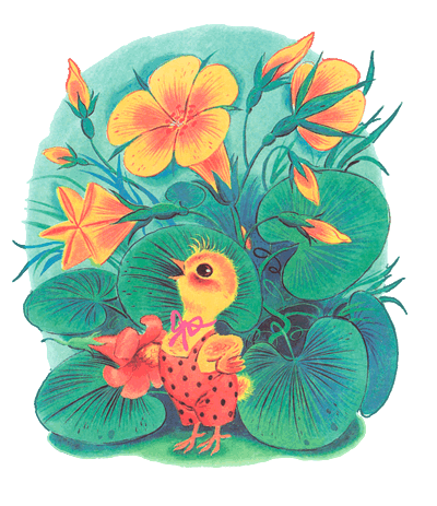 …Девочки и мальчики Прыгают, как мячики. Ножками топочут, Весело хохочут. Почему не пляшет Новенькая наша? Катя к новенькой идёт, В хоровод её ведёт. …Огни погасли, Уснули ясли: И Лида, и Катя, И куклы в кровати. Только Мишка не спит, На окне сидит; Глядит на луну: «Никак не усну!»
