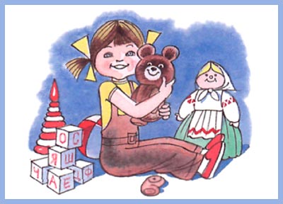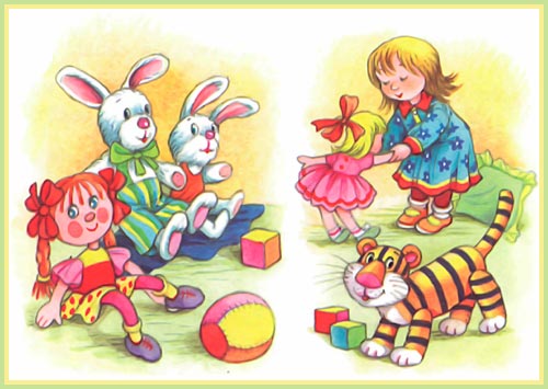 Из цветной пушистой байки Малышам игрушки шьём — Куклы, мячики и зайки. Их всё больше с каждым днём. Здесь игрушек целый угол: Белый выводок зайчат, И косички толстых кукол Кверху бантами торчат…. Вот тигрёнок полосатый. У тигрёнка добрый вид, Потому что только ватой У него живот набит…