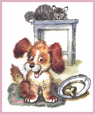 На дверях висел Замок. Взаперти сидел Щенок. Все ушли И одного В доме Заперли его. Мы оставили Трезора Без присмотра, Без надзора, И поэтому щенок Перепортил всё, что мог.