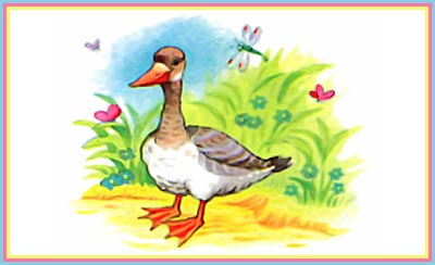 Гусь-гусёк, куда пошёл ты? На речной песочек жёлтый — А ты, гуля-голубок? В лес зелёный на дубок. А ты куда, Алёнушка? Я во двор, на солнышко.