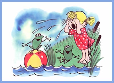 Наша Таня громко плачет: Уронила в речку мячик. — Тише, Танечка, не плачь: Не утонет в речке мяч.