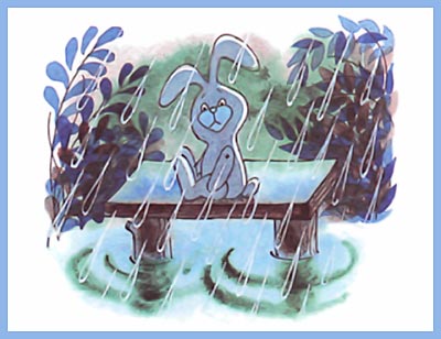 Зайку бросила хозяйка — Под дождём остался зайка. Со скамейки слезть не мог, Весь до ниточки промок.