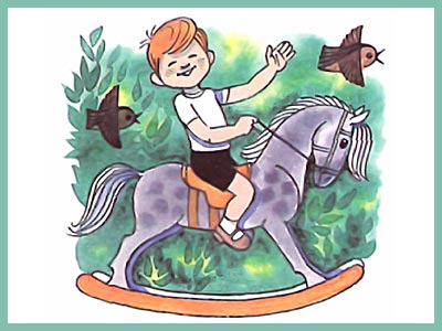 Я люблю свою лошадку, Причешу ей шёрстку гладко, Гребешком приглажу хвостик И верхом поеду в гости.