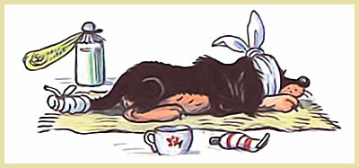 Весь укутанный,В постелиМой щенок лежит пластомИ виляет еле-елеЗабинтованным хвостом.Я не бегаю к врачу —Я сама его лечу.