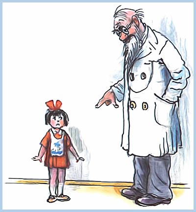 Появился детский врач —Глеб Сергеевич Пугач,Смотрит строго и сердито:— Нет у Юли аппетита?Только вижу, что она,Безусловно не больна!А тебе скажу, девица:Все едят —И зверь и птица,