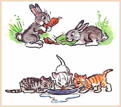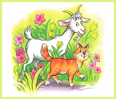 Там котик усатыйПо садику бродит,А козлик рогатыйЗа котиком ходит;И лапочкой котикПомадит свой ротик;А козлик седоюТрясёт бородою.