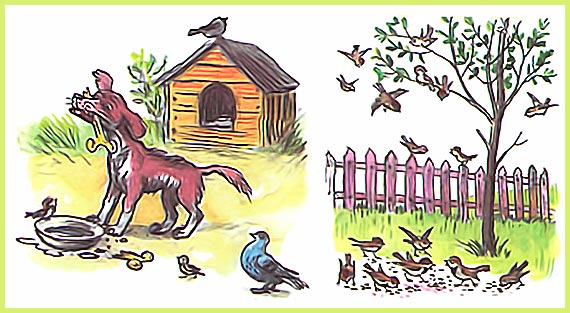 Кость грызёт дворовый Пёс.Воробьи зерно клюют,Там, где только достают,