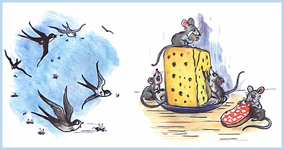 Ловит мошку ловкий Стриж.Сыр и салоЛюбит Мышь…Попрощался с Юлей врач —Глеб Сергеевич Пугач.И сказала громко Юля:— Накорми меня, мамуля!