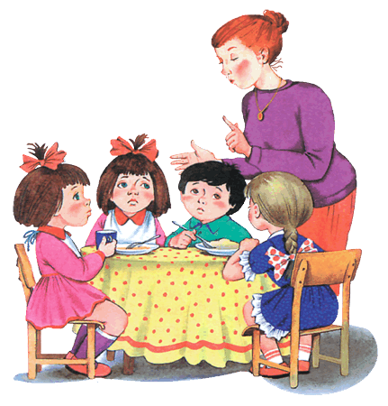 Вот сестрёнка Ира —Полный рот кефира.Вот сестрёнка Света —Полный рот омлета.Рядом Петя с ДашейМучаются с кашей.Как же это некрасиво!Эй, ребята, жуйте живо!Быть голодным очень глупо:Вы уже большая группа.