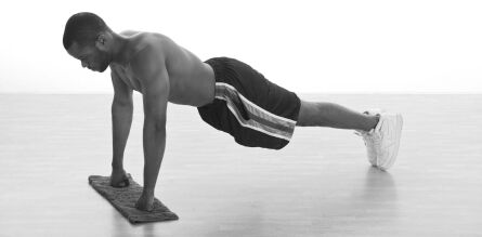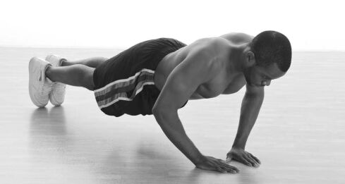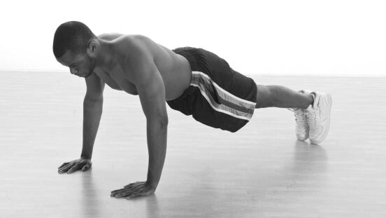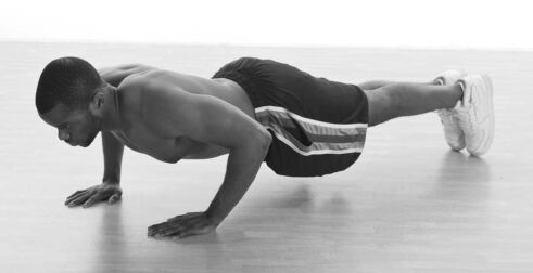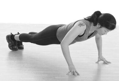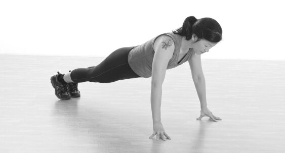 Исходное положение: Примите положение «упор для отжиманий». Ноги можно слегка развести в стороны, чтобы легче было сохранять равновесие.