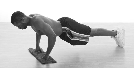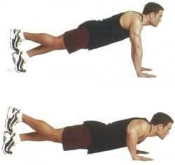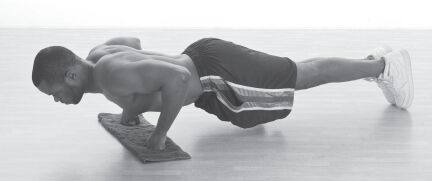 Исходное положение: Примите положение «упор на прямых руках», но положите одну ногу на другую так, чтобы с полом соприкасался только носок нижней стопы.