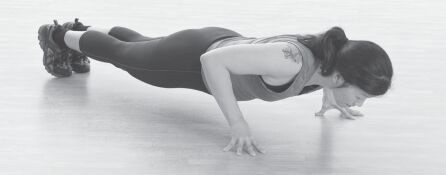 • Опускайте тело, пока угол сгиба рук в локтях не составит примерно 90 градусов, а грудь не окажется в 3–5 см от кистей.