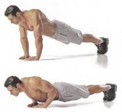 Это взрывное, или плиометрическое, упражнение способствует дальнейшему развитию мышц плечевого пояса, груди и трицепсов.