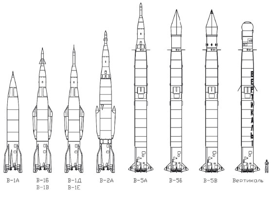 Советские геофизические ракеты серии «В» («Вертикаль») на базе боевых баллистических ракет (рисунок А. Шлядинского)