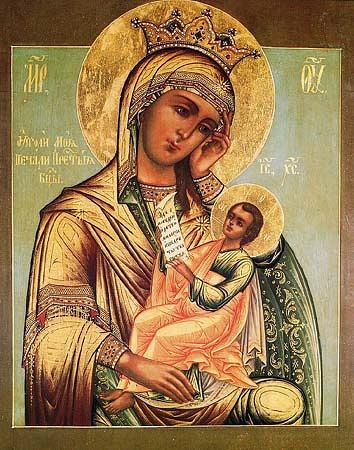 «Утоли болезни многовоздыхающия души моея, утолившая всяку слезу от лица земли: Ты бо человеком болезни отгониши и грешных скорби разрушаеши, Тебе бо вси стяжахом надежду и утверждение, Пресвятая Мати Дево».