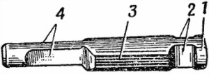 1 — головка; 2 — боковые вырезы; 3 — утолщение; 4 — срезы