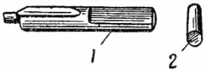 — на переднем срезе чашечку для помещения донной части патрона и отверстие для выхода бойка;