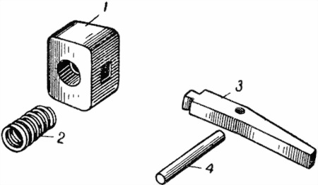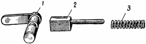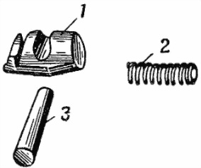 1 — выбрасыватель; 2 — пружина; 3 — ось