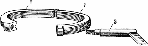 1 — тяга; 2 — втулка; 3 — гайка зажима с рукояткой