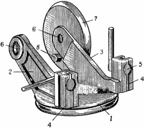 1 — основание вертикальной наводки; 2 — нижний качающийся стол; 3 — верхний качающийся стол