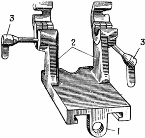 1 — цилиндрический выступ; 2 — кронштейны; 3 — стяжные болты