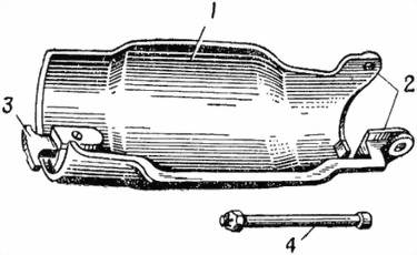 з) Пластинка хомутика крепится к остову хомутика сзади, после сборки всех частей в хомутике. К остову хомутика пластинка крепится двумя винтами, входящими в соответствующие навинтованные отверстия. В верхней части пластинки сделан вырез, обеспечивающий лучшую видимость шкалы, имеющейся на остове хомутика.