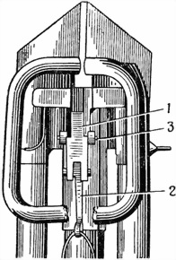 1 — остов замка; 2 — рычаг замка; 3 — ось