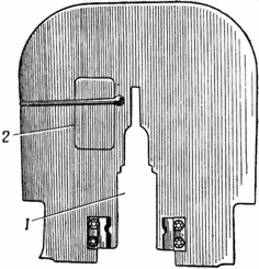 187. Курсовой визир (рис. 92) служит для установки прицельной шкалы параллельно движению самолета, а также для проверки ее положения. Он состоит из рамы и кольца с курсовыми нитями.