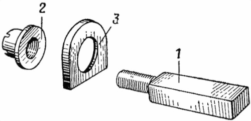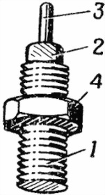 1 — нарезной конец; 2 — квадратная часть; 3 — цилиндрическая часть; 4 — гайка