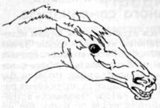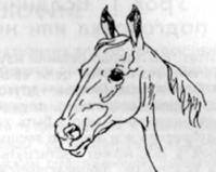Многие новички-горожане пытаются установить контакт с лошадью так, как Они делали бы это С кошкой или собакой. Нежные поглаживания, шептание ласковых слов, угощение. Старые лошади по этим приемам сразу распознают начинающих и даже могут отвадить их от проявлений "нежности", Не пытайтесь подлизываться к коню, но и не грубите. Будьте "первым среди равных", и конь Вам позволит все. Внимательно наблюдайте за мимикой лошади. Ее "лицо".очень выразительно. Вытянутая шея. оскаленные зубы, прижатые уши выражают угрозу (Рис.1). Помните, что лошадь видит и вперед, и назад. Подходя к ней, старайтесь увидеть ее глаза, уши. Окликните ее, неважно как. Важен сам звук голоса. Главное — не испугать. Несмотря большой рост, лошади, как и все копытные, весьма подвержены испугу, панике. Слух у лошади играет большую роль, чем зрение. Одним из наиболее действенных факторов общения с конем является голос. Если у коня голова повернута к вам, а уши стоят торчком — смело подходите (Рис.2). Не тяните заранее руку с уздечкой или угощением. Просто подойдите, похлопайте коня по шее. скажите пару слов. Почему хлопать, а не гладить? У человека и лошади разные пороги чувствительности, разная толщина кожи. Когда лошади чешут друг другу зубами холки, то усилия, прилагаемые при этом, у человека могли бы содрать кожу.