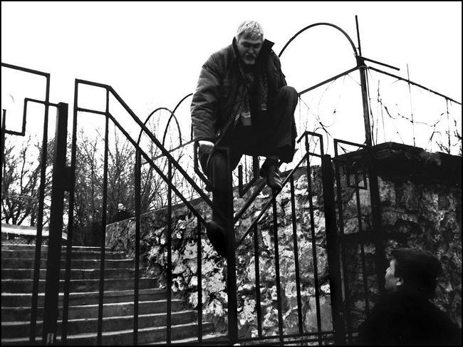 Честное слово, я вспомнил эту историю сейчас случайно. Просто написал про «запрещающего» и вспомнил. В чём-то мы сродни пресловутым «папарацци» – добываем нужную нам информацию любыми путями. Но, в отличие от них, я никогда не был назойлив и бестактен, единственное, в чём всё-таки обманул несколько бдительных старушек, так это в том, что 2–3 раза в жизни фотографировал украдкой. Им от этого убыли не было никакой, напротив, я постарался тем самым сберечь их здоровье. Дело в том, что в людях старшего поколения прочно сидит благоприобретённый страх перед фотоаппаратом. Иногда бодрый старичок при виде человека, нацелившего объектив на непонятный для него объект, начинает брызгать слюной и непроизвольно скрести полу засаленного пиджака в поисках несуществующей кобуры. Они прочно привыкли к порядку, и любые, как им кажется, «вольности» приводят их к неизлечимым болезням. Сотни раз нам приходилось подглядывать в забитые окна и перелезать через заборы, наводя панику на свидетелей. А как иначе? Ведь очень часто нам надо попасть именно туда, где всё закрыто-забито, а хозяев с собаками не сыщешь. Иногда ребята фотографировали меня в таком интересном положении, поэтому, чтобы не быть голословным, подтверждаю фотодокументами из личного архива всяких глупостей и «приколов».