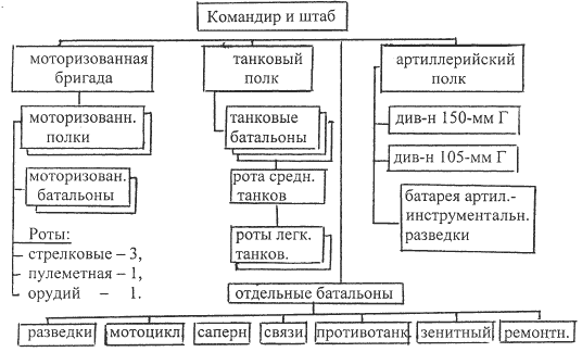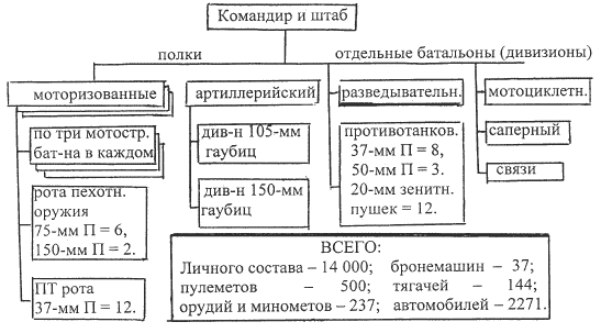ВСЕГО: личного состава – 16 000; бронемашин – 25; пулеметов – 500; танков – 209; орудий и минометов – 192; бронетранспорт – 160.