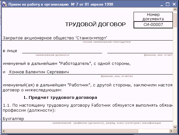 12.3. Документ «Трудовой договор»