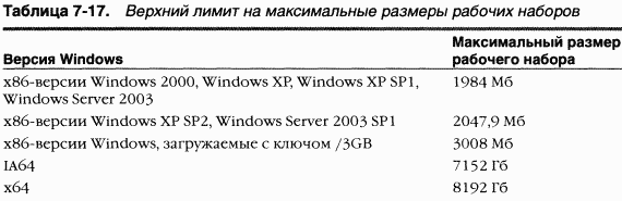 Минимальный и максимальный размеры системного рабочего набора вычисляются при инициализации системы, исходя из объема физической памяти компьютера и выпуска Windows — клиентского или серверного.