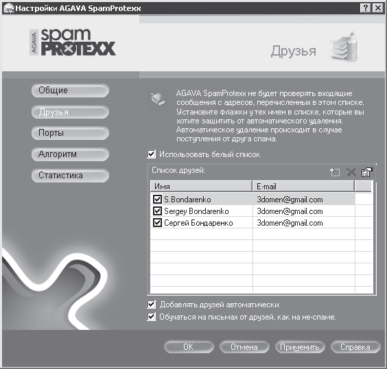 Рис. 3.63. Составление списка друзей в программе SpamProtexx