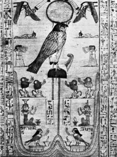 Ра в образе сокола, несущего солнечный диск. Рисунок из «Книги мертвых» Анхаи. Ок. 110 до н. э.