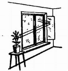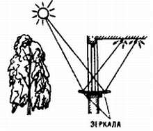 • Цветам, стоящим в глубине комнаты, не хватает освещения. Восполнить нехватку света поможет зеркало, установленное на подоконнике, как показано на рисунке.