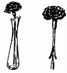 • Для того чтобы цветок с коротким стеблем можно было поставить в вазу, конец стебля слегка расщепите и вставьте внутрь стебля отрезок тонкой ветки с очищенной корой. Для прочности место соединения обвяжите тонкой медной проволокой. Влага к цветку будет поступать по ветке-удлинителю.