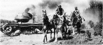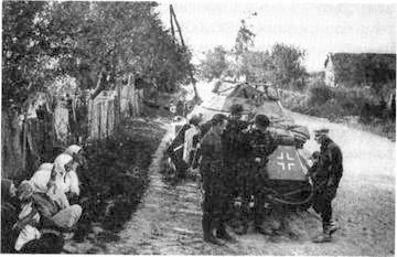 На дорогах уже стоит разбитая советская техника.