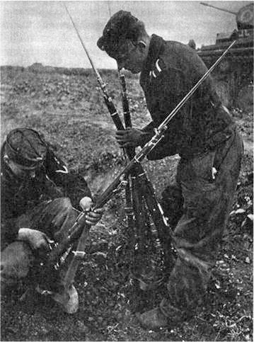 рабочих, главным образом металлистов. Если немецкие офицеры стремились поскорее подняться в воздух для борьбы с советскими самолетами, то у солдат на этот счет было свое мнение. Они проявляли значительно меньшее рвение. Пока грохотали на аэродроме бомбы с замедлителями, сброшенные советскими самолетами, солдаты предпочитали отсиживаться в убежищах. Работа на аэродромах шла более вяло, чем того требовали обстоятельства. Первые же разрывы советских бомб подтвердили со всей очевидностью тяжелый для германского командования недостаток технических войск. Слишком многое зависело от людей, обладающих умелыми и грубыми руками, слишком многое господа офицеры не умели делать сами».Подобные попытки ввести «классовый» элемент в ход боевых действий были характерны для советской пропагандистской машины предвоенного периода. В сущности это была попытка найти «ахиллесову пяту» у экономически развитого и потому вооруженного современной техникой противника. Однако эти ожидания оправдались в наименьшей степени. «Господа офицеры» из бомбардировочных и истребительных эскадр Люфтваффе действительно многое не умели делать сами, да это им и не требовалось. На каждый немецкий самолет приходилось по десятку «черных людей», прозванных так за цвет униформы механиков. 22 июня они не спешили проявлять пролетарскую сознательность и без устали готовили самолеты к новым вылетам. Вкупе с техническим совершенством самолетов это позволило немцам держать очень высокие темпы боевых вылетов.