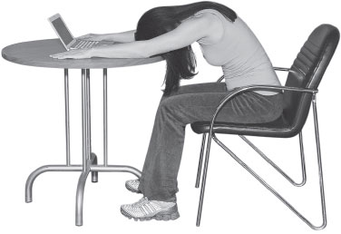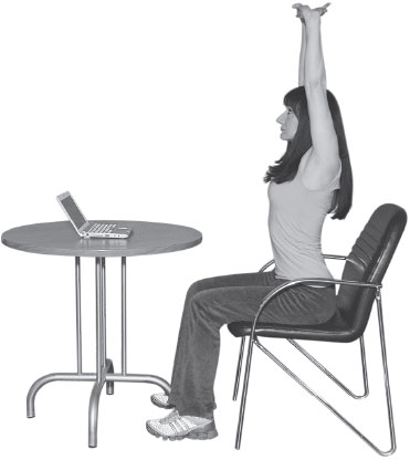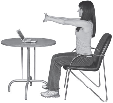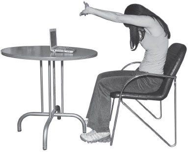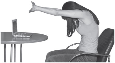 Вытягиваем руки перед собой, затем сутулимся и опускаем голову к рукам.