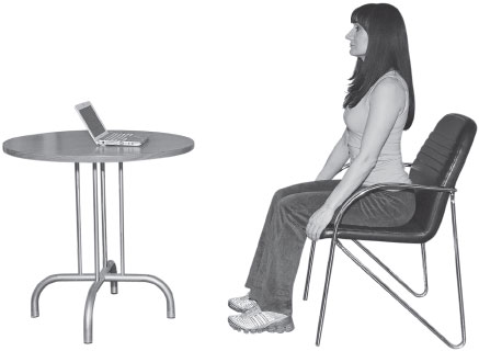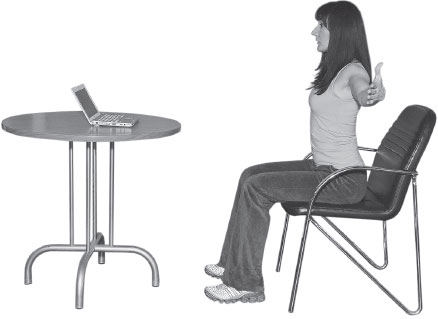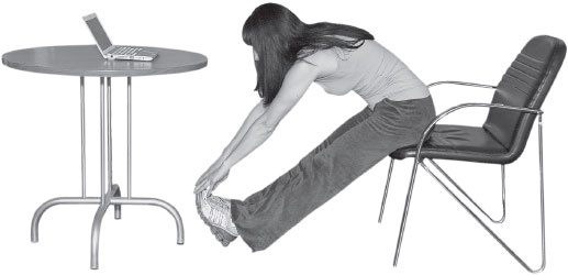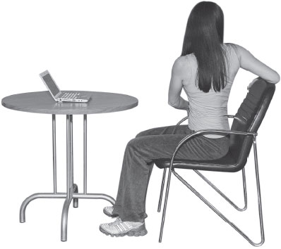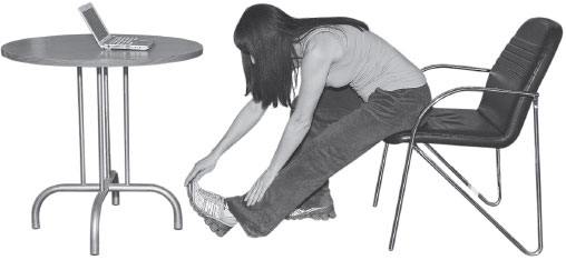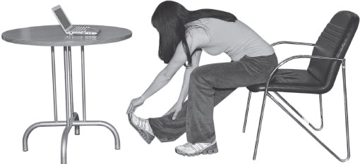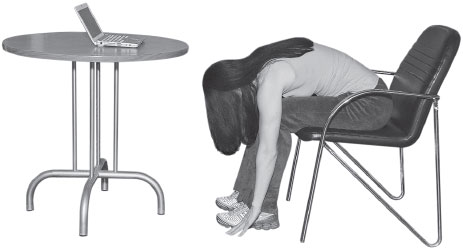 Держимся за стол правой рукой и наклоняемся максимально влево. Задерживаемся на 2–3 секунды и возвращаемся в исходное положение. Затем наклоняемся в правую сторону, держась за стул левой рукой.