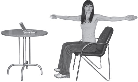 И. п.: сидя. Руки разведены в стороны, смотрим перед собой.