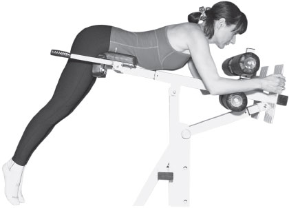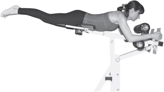 И. п.: лежа на животе на тумбочке или станке (под бедра можно подложить что-то мягкое – подушку, одеяло, поролон).