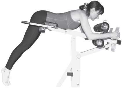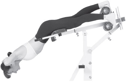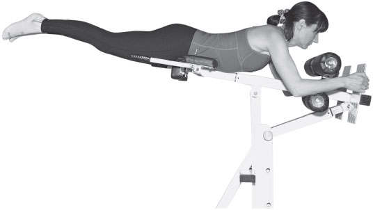 И. п.: лежа на животе на тумбочке или станке (под бедра можно подложить что-то мягкое – подушку, одеяло, поролон).