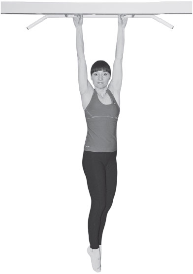 И. п.: висим на перекладине в дверном проеме, ноги не касаются пола.