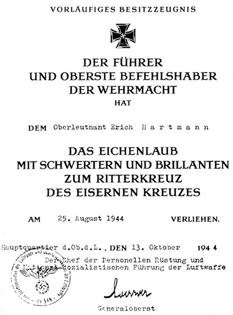 Он прилетел обратно в Россию, и его товарищи столпились вокруг него, чтобы рассмотреть прекрасную награду и еще раз поздравить его. Отважное веселье этих боевых пилотов не могло отвлечь Эриха от мысли, что фатерланд гибнет и что окончательное поражение неотвратимо.На следующий день пришло разрешение на 10-дневный отпуск. Он полетел назад в Берлин для встречи с генералом Галландом, а оттуда отправился в Штутгарт в отпуск. В огромном брюхе Ju-52 Эрих просто потерялся. Огромные моторы грохотали, неся его к дому. До встречи с Уш оставалось всего несколько часов. Он имел 301 победу. Уш должна была стать триста второй победой. Они поженятся, и пропади пропадом эта война!