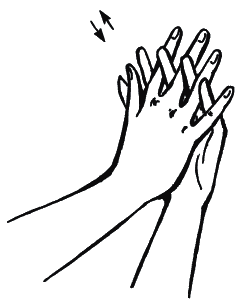 1. В течение 1–2 мин растирайте кисти, имитируя намыливание рук. Постепенно увеличивайте силу нажима и интенсивность движений.