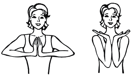 6. Держа локти на уровне плеч, плотно сомкните ладони. Затем разведите их так, чтобы локти и запястья обеих рук приблизились друг к другу, после чего вернитесь в исходное положение. Повторите упражнение 20 раз (рис. 19).